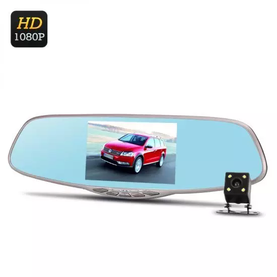 Backspegelkamera med 5" IPS-spegeldisplay, FullHD, Dubbla kameror, G-sensor, 170 grader vidvinkel, IR-backkamera