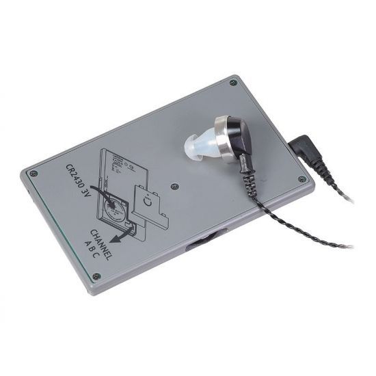 Ljudmottagaren går på ett CR-2430 batteri och har cirka 7h batteritid. Ta med dig flera batterier för säkerhets skull.