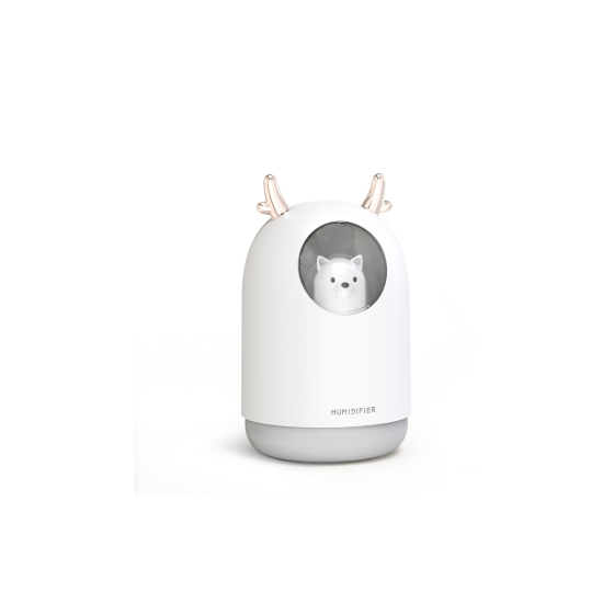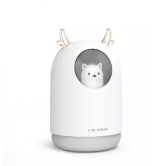 Är det dålig luft i din lägenhet eller känns det som att luften du andas är för torr är denna ultraljudsluftfuktare något för dig. Med hjälp av ultraljud sprider luftfuktaren ett lätt dis som förbättrar luften i din hemmiljö! Kopplas lätt in med USB och behöver endast fyllas på med vatten. Fungerar lika bra vare sig det är sommar eller vinter, under sommaren ges det en skön svalka på kvalmiga dagar och under vintern återställer ultraljudsluftfuktaren fuktighetsbalansen hemma! Kan även fungera som en liten nattlampa då det lyser i det lilla fönstret där hunden sitter. perfekt för ett litet barn!