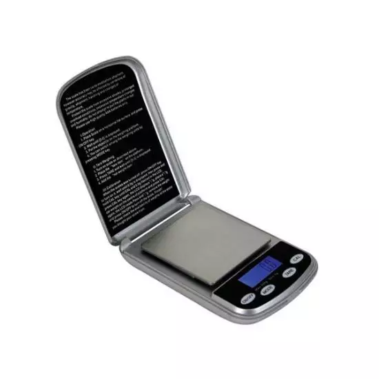 Våg för vägning upp till 500 gram med 0,1 grams intervall. Upplyst display som visar vikten i gram, ounce, carat och grains.