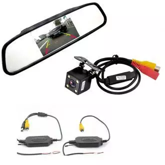 Trådlöst backkamerapaket till bil, 4,3" backspegeldisplay, 170° vidvinkel, mörkersyn