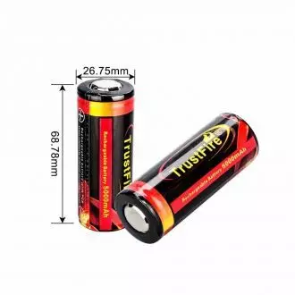 Uppladdningsbart batteri på hela 5000 mAh av modellen 26650.